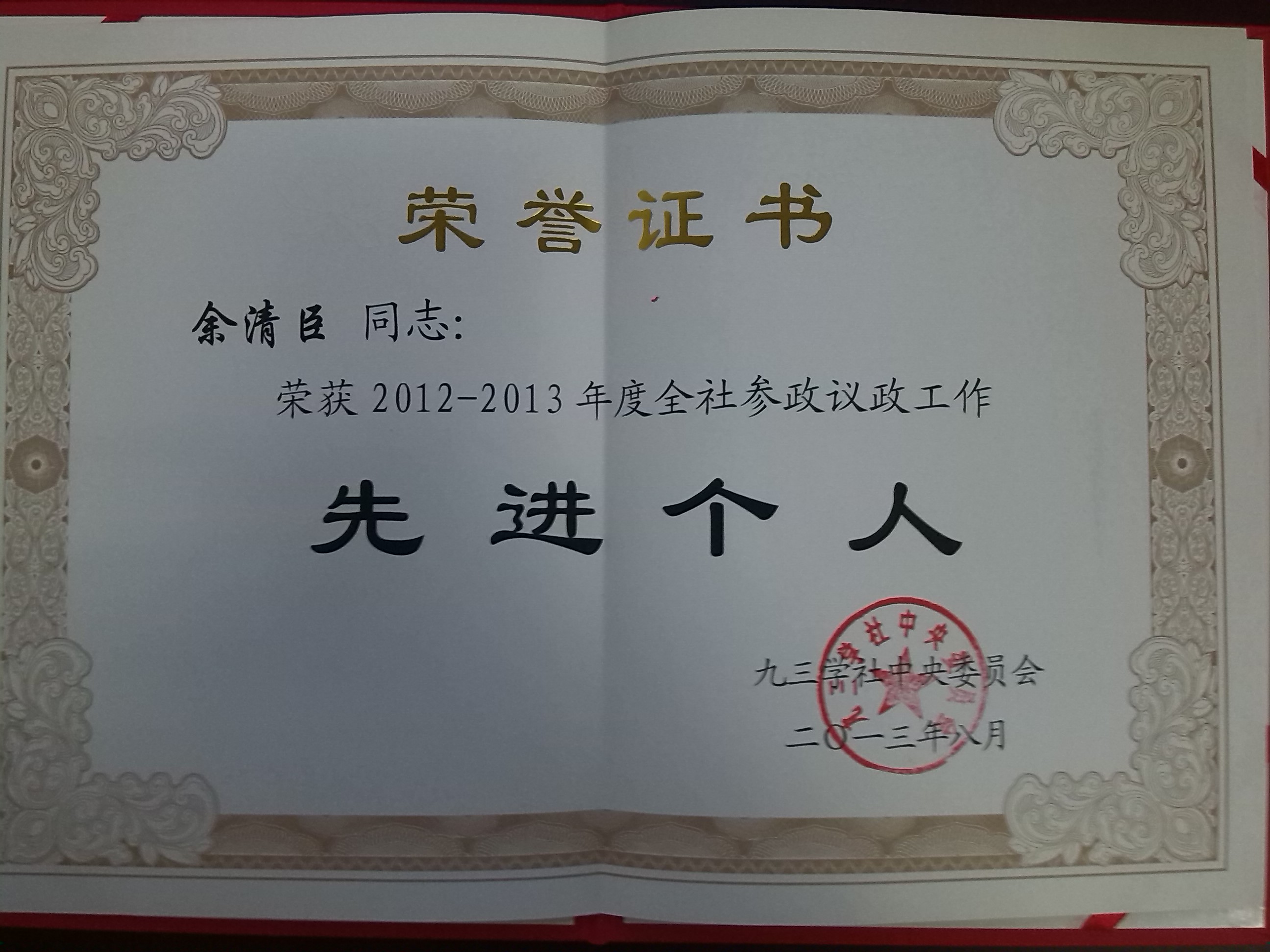 九三学社北京师范大学委员成员、教育学部教育基本理论研究院副院长余清臣博士,荣获九三学社中央“2012-2013年度全社参政议政先进个人”称号。