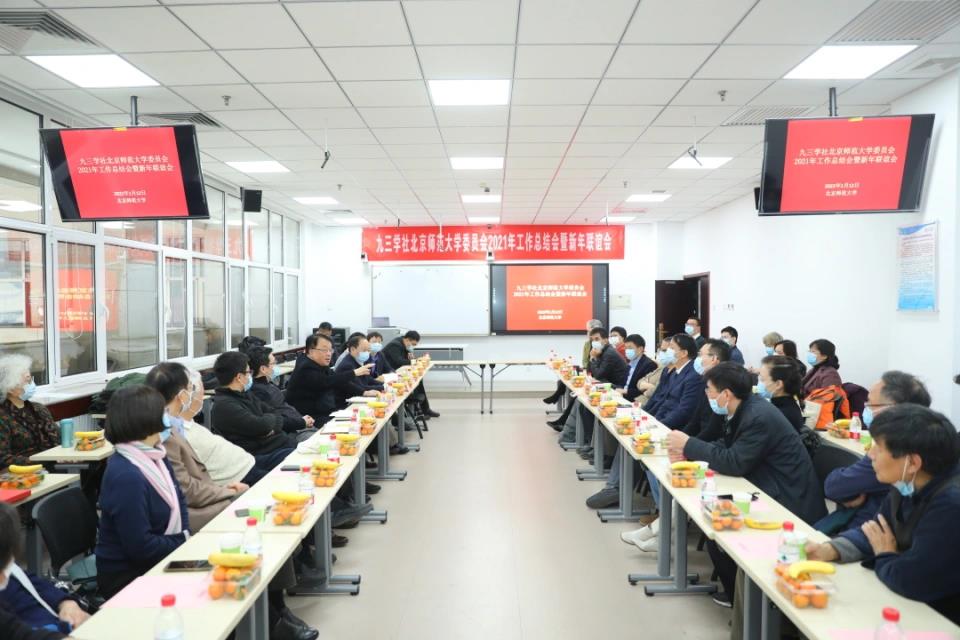 1月12日上午,九三学社北京师范大学委员会举行2021年工作总结会暨新年联谊会。北京师范大学党委书记程建平,九三学社北京市委专职副主委左小兵、组织部副部长黄琳、办公室四级调研员付钰,北京师范大学党委统战部相关负责人以及40余位社员参加会议。会议由九三学社北京师范大学委员会副主委孙运传、杨赛霓主持。
